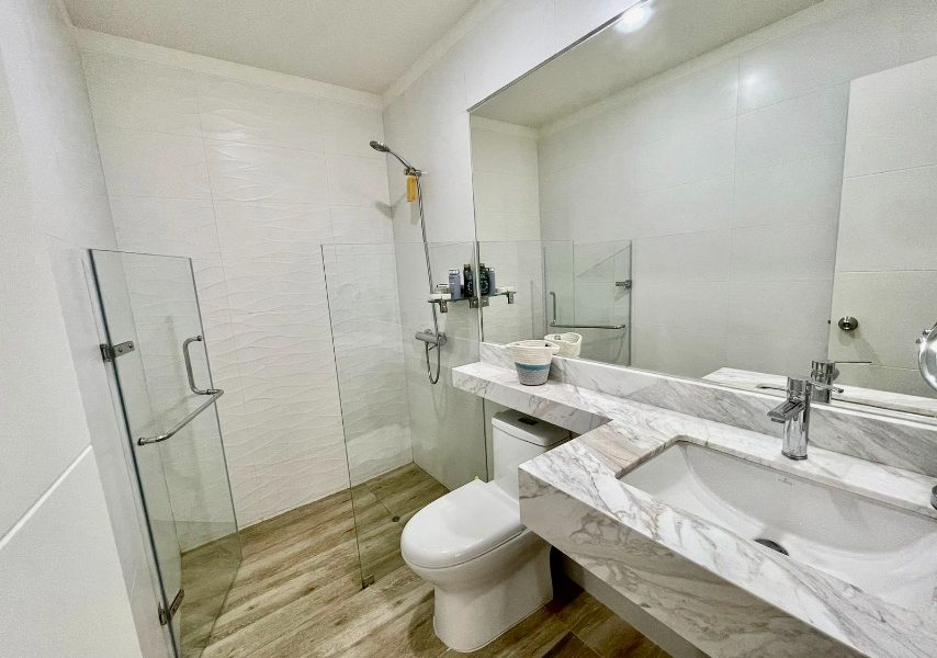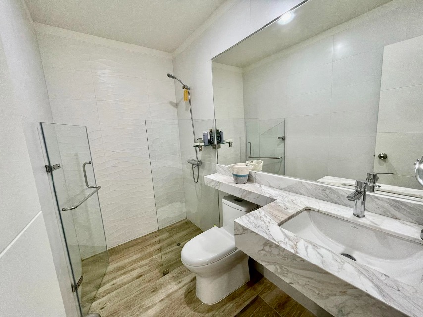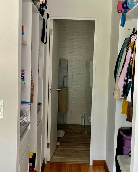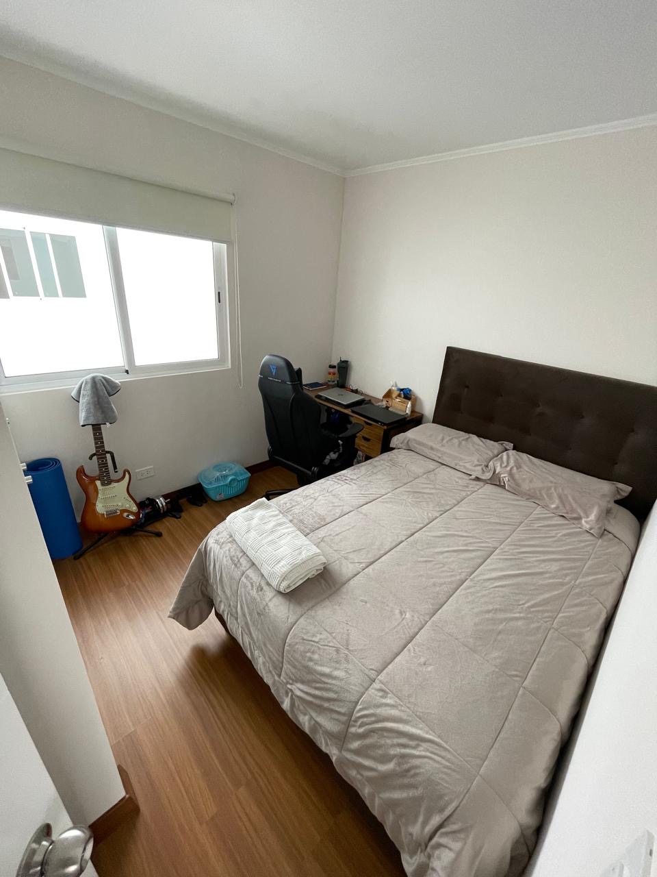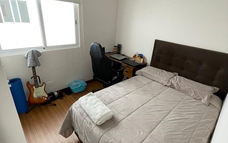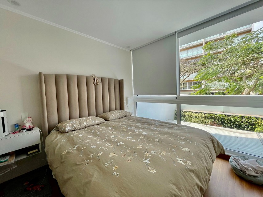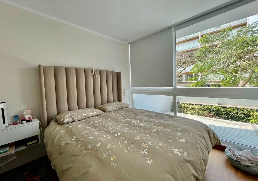 Dos dormitorios, cada uno con su baño incorporado. El cuarto principal tiene mampara que da al balcón y cuenta con walking closet.