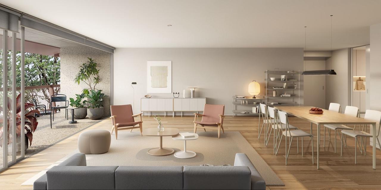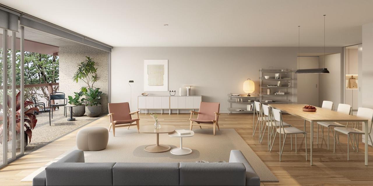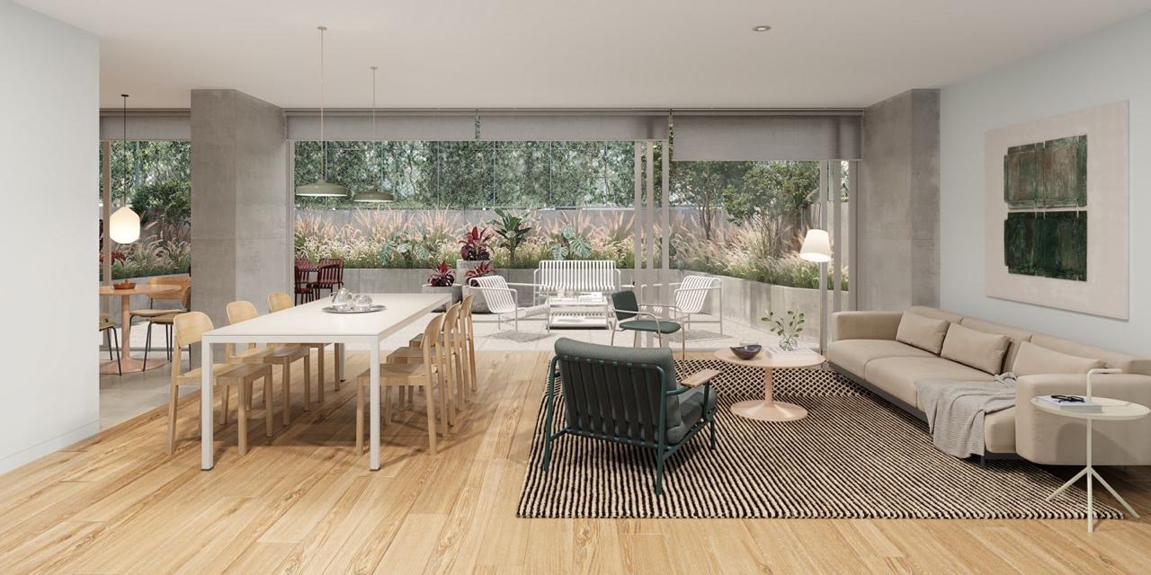 Proyecto «Tipuana» esta ubicado en el corazón de San Isidro, se adapta a una calle tranquila con veredas amplias arboladas y construye una relación próxima con las 4 frondosas tipas (Tipuana tipu, árbol sudamericano).