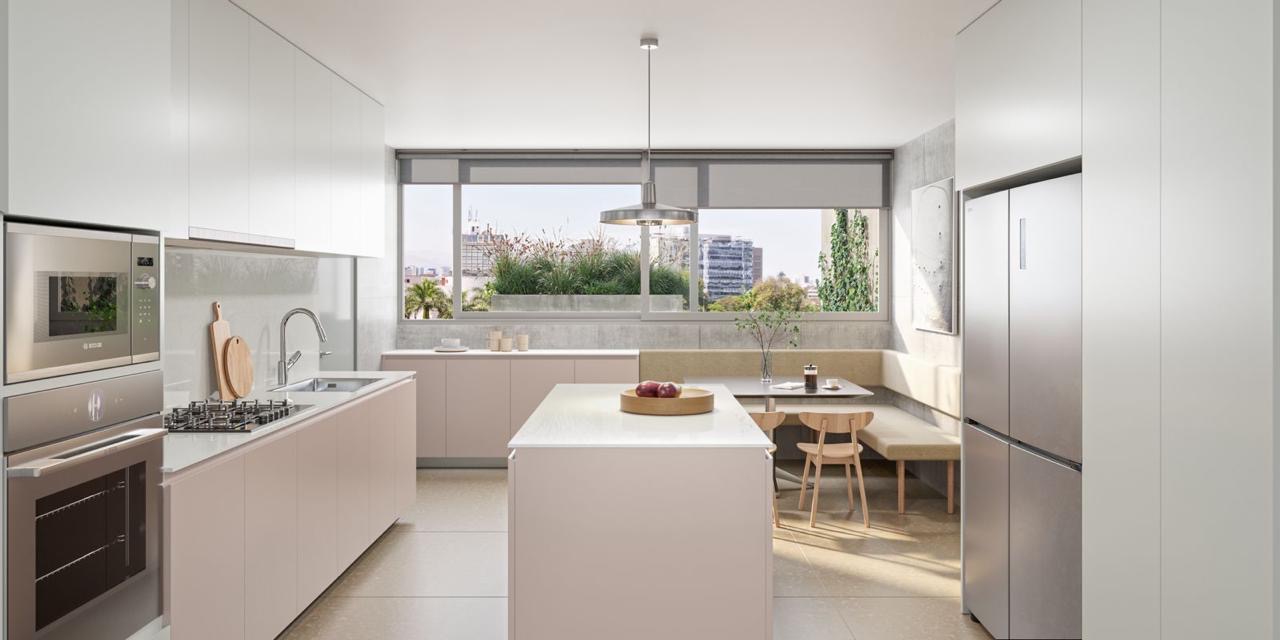 Sala, comedor, baño de visitas, cocina cerrada con comedor de diario, lavandería, cuarto y baño de servicio. Terraza. Sala de estar. 3 dormitorios cada uno con su baño incorporado. Con terrazas de 8 ml de frente x 2.25 de ancho.
