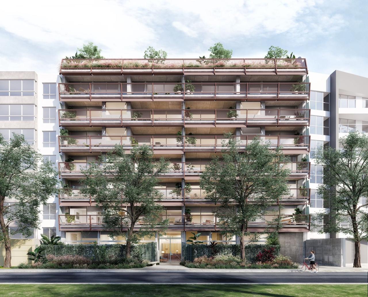 Edificio de 7 pisos + azotea, 16 dptos. (4 dúplex, 10 flats, 2 penthouses), 2 dptos. por piso. Cuenta con un frente amplio de 30 metros lineales.