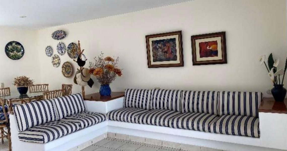 – Sala de estar con mamparas hacia la terraza